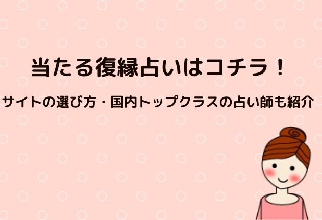 良い占い師に出会えば、どんなに難しい状況でも復縁への道は開けます。 このページでは、復縁占いの基本から、当たる占い師やサイトの特徴、実際に私がおすすめするサイト・占い師、そして復縁占いの疑問点まで、知っている限りの情報をお伝えします。